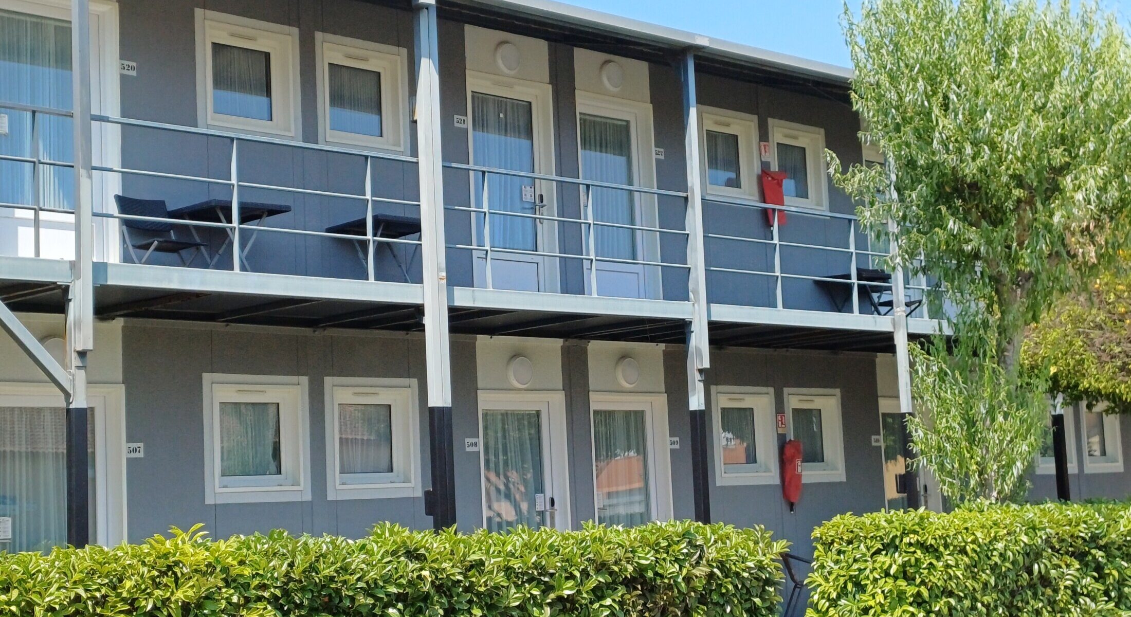 Au sein d’un jardin arboré, cet appart-hôtel est construit sur le modèle des motels américains